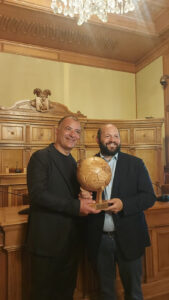 È poi seguito un momento speciale per suggellare la collaborazione, per condividere obiettivi e valori comuni tra la Provincia di Lecce e l’U.S. Lecce. E per omaggiare lo straordinario traguardo sportivo raggiunto, che apre le porte alla quarta stagione consecutiva di permanenza nella massima serie calcistica della squadra, orgoglio dell’intero Salento. Nella sala consiliare di Palazzo dei Celestini, il presidente della Provincia di Lecce Stefano Minerva ha incontrato oggi il presidente Sticchi Damiani per uno scambio di saluti, come testimonianza di gratitudine e riconoscimento per l’impresa realizzata dalla squadra giallorossa con la salvezza conquistata nel campionato di calcio di serie A. Presente anche il direttore generale Giuseppe Mercadante.
