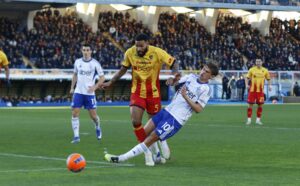 LECCE (di Pierpaolo Sergio) – Nell’ultimo impegno del 2025, un Lecce infarcito di assenze inciampa nel Como e chiude con una secca sconfitta per 0-3 viziata però dall’errore di valutazione di arbitro e Var che non puniscono una sbracciata su Ramadani di Nico Paz che sul prosieguo dell’azione trova il vantaggio con un tiro deviato da Tiago Gabriel. I giallorossi ci mettono cuore e grinta, ma a fare la differenza è la qualità negli ultimi sedici metri che premia gli ospiti e penalizza i padroni di casa che fermano a due la serie di vittorie interne consecutive.