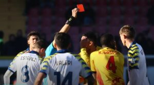 LECCE – Sono pesanti gli strascichi della sconfitta interna del Lecce patita per mano del Parma nell’ultimo turno di Serie A. Il Giudice Sportivo Gerardo Mastrandrea, sulla base del referto dell’arbitro Marinelli, ha infatti inflitto ben 3 turni di squalifica a Kilonda Gaspar, espulso al 93° minuto del match contro i ducali. Una sola giornata di stop invece per l’altro calciatore a cui al 54° era stato mostrato il cartelino rosso, ossia Lameck Banda, che pure salterà la sfida di domani sera contro l’Inter, alla pari dell’altro compagno di squadra Ylber Ramadani, anch’egli appiedato per un turno, dopo l’ammonizione che, da diffidato, ha fatto scattare in automatico la sanzione.